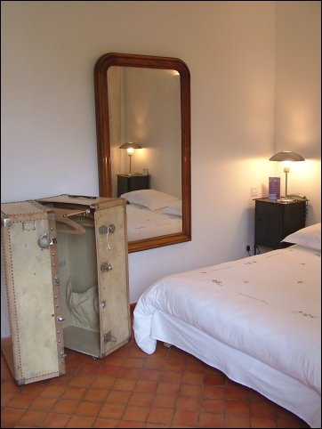 Etonnante chambre en rez-de-jardin, avec double petit balcon et meubles de brocante. |